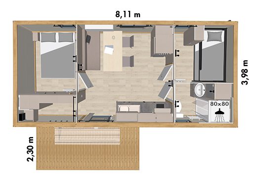 Móvil, compacto, funcional y rápido de instalar, el Teamcamp es una respuesta práctica a las necesidades de alojamiento del personal de temporada.