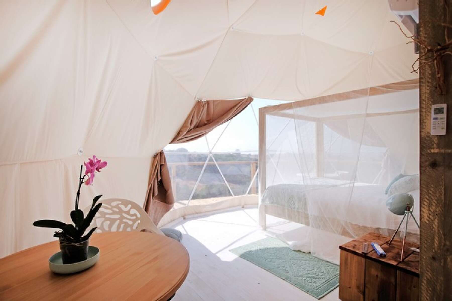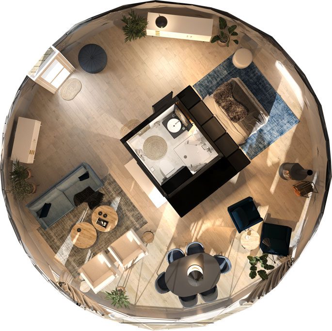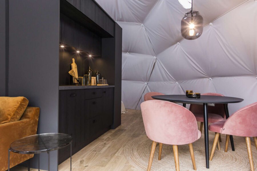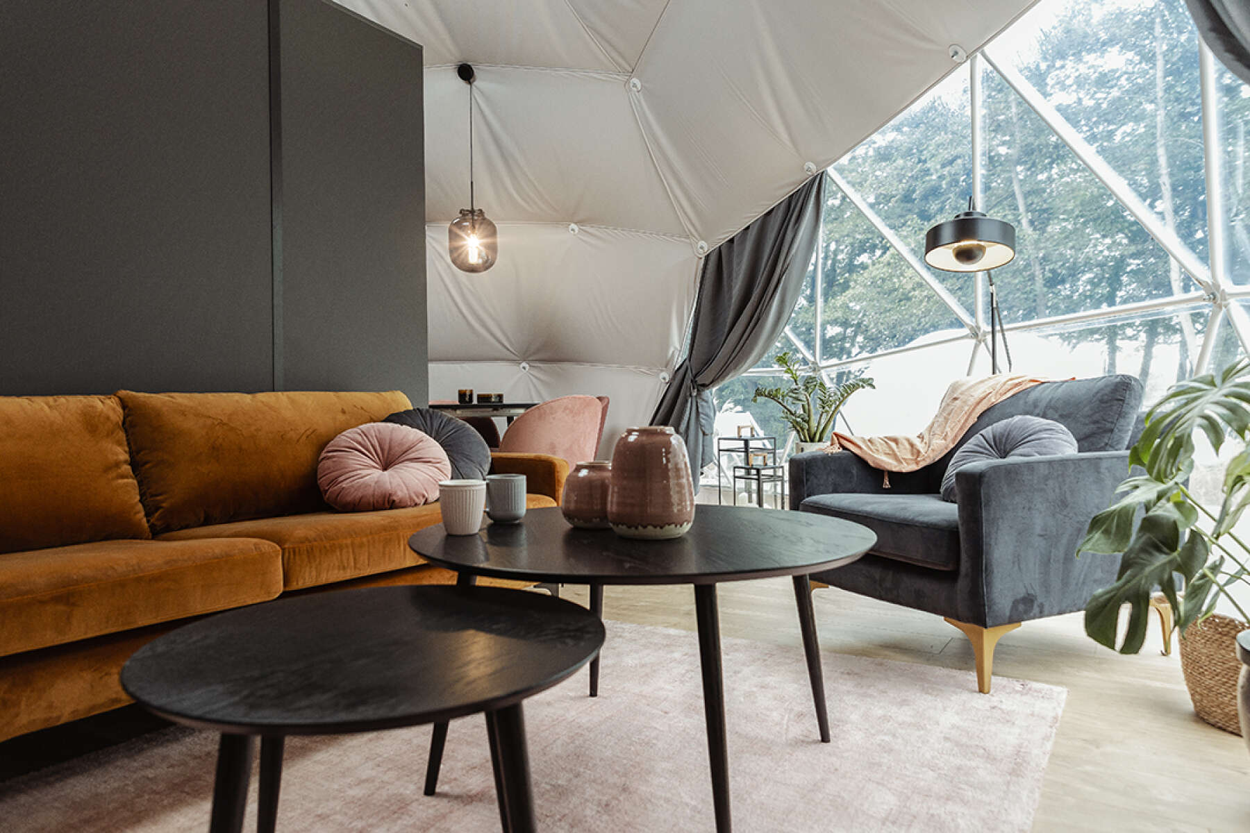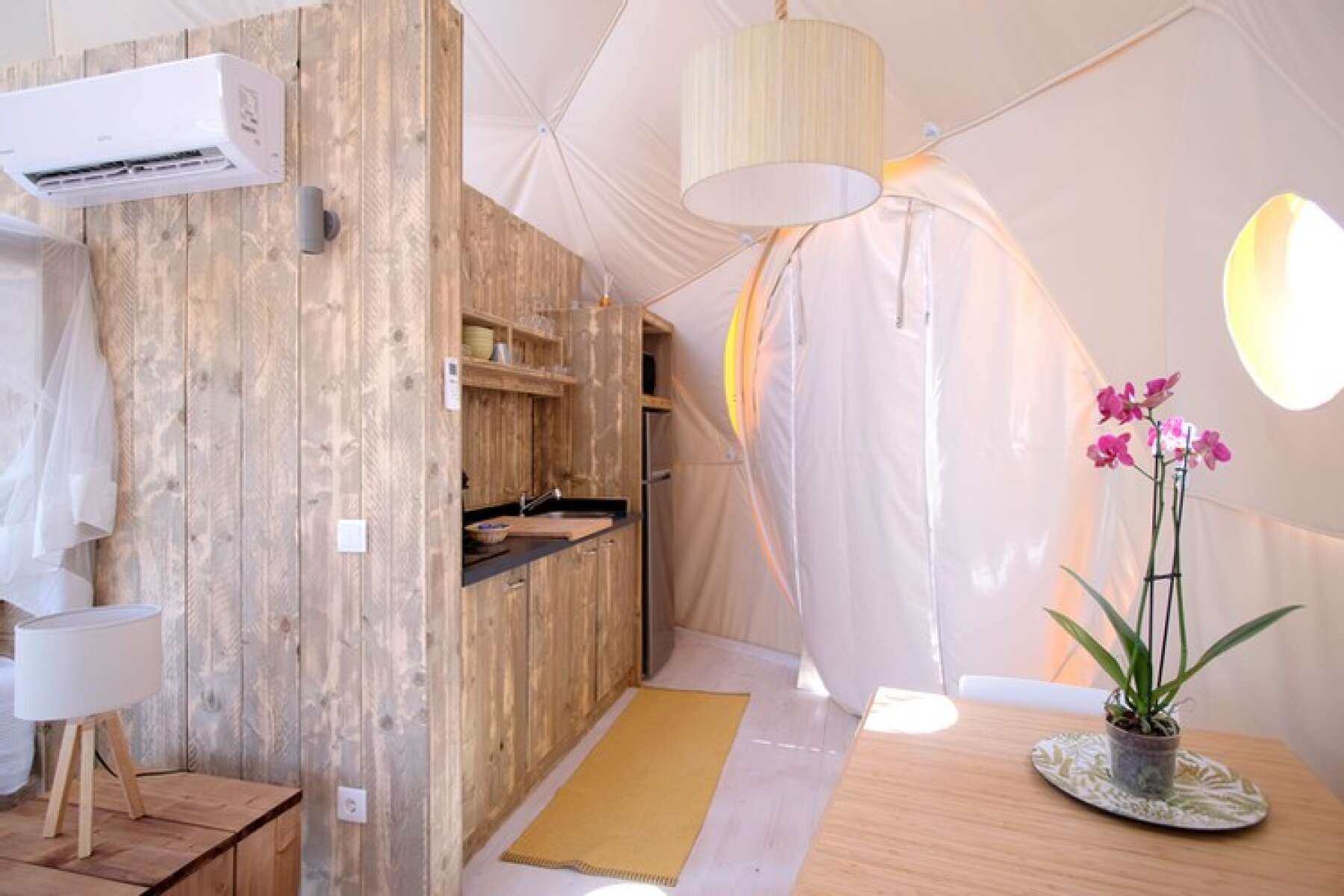Calidez y sensación de cercanía con más espacio para amueblar. Magnífico salón de vacaciones para una pareja o una familia pequeña, que permite experimentar el auténtico espíritu glamping y conectar con la naturaleza.