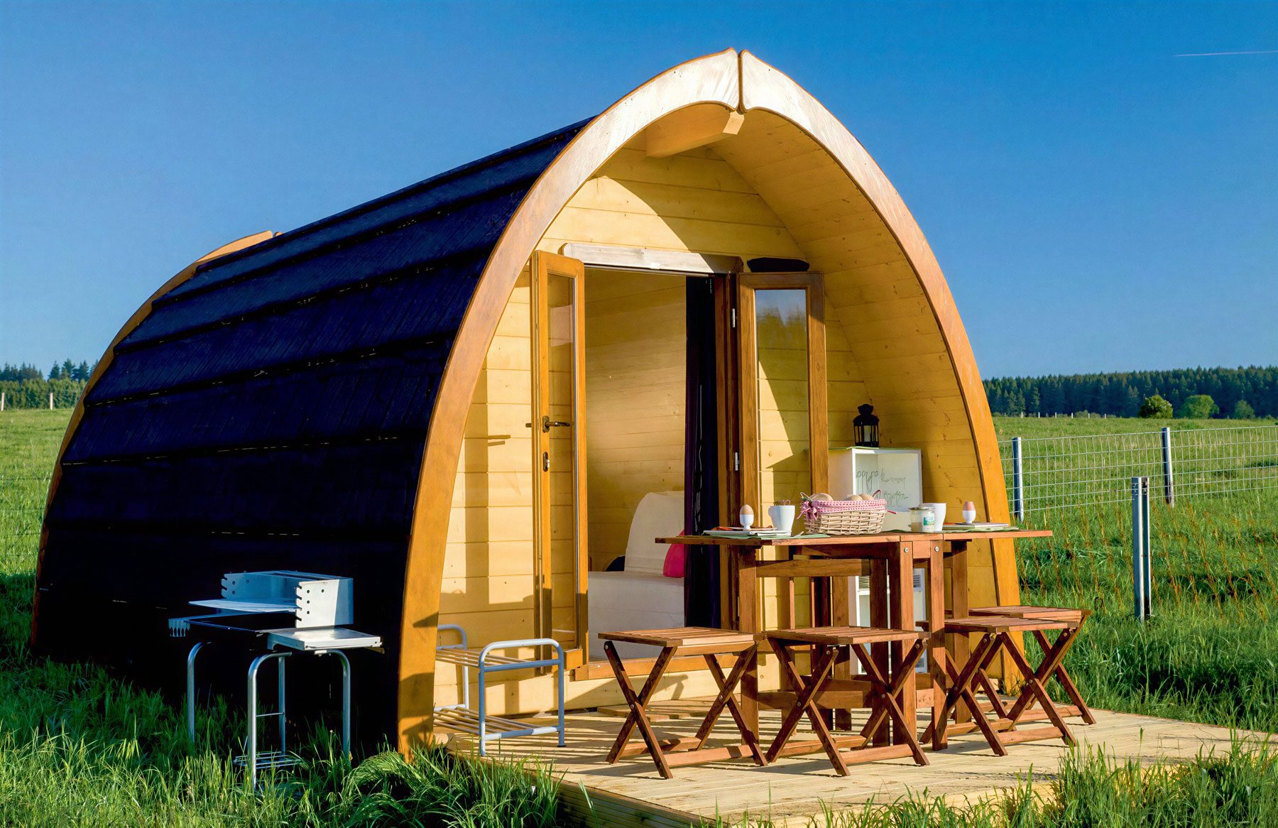 Un alojamiento único con una forma singular que subraya su carácter ecológico.