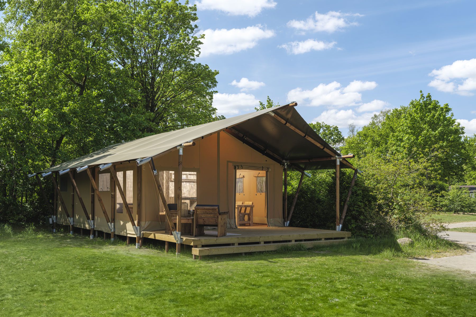 La tienda combina un aspecto robusto con un interior bien pensado, práctico y cómodo. La amplia terraza proporciona espacio adicional y la hace atractiva toda la temporada. La sólida implantaciónw, la lona resistente y los cuidados acabados garantizan una larga vida útil. La Wood Lodge es fiable, acogedora y se adapt a cualquier terreno, desde un tranquillo camping natural hasta un lujoso complejo glamping.